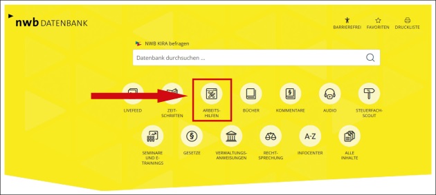 Um Ihre tägliche Arbeit zu erleichtern, stehen Ihnen in der NWB Datenbank zahlreiche Arbeitshilfen zur Verfügung. Sie sind auf der Startseite der NWB Datenbank unterhalb des Suchfelds aufrufbar.