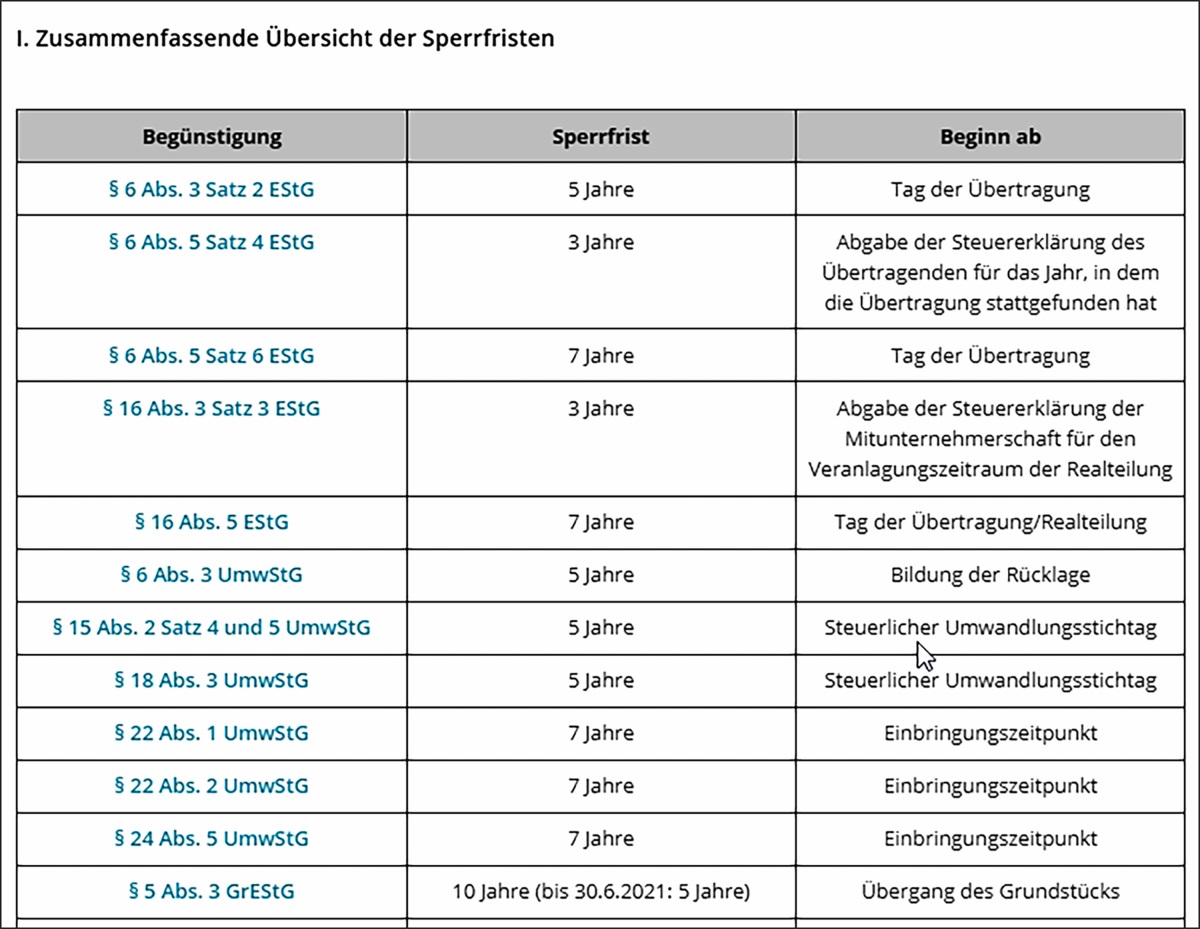 Im Falle der Übertragung von betrieblichen Sachgesamtheiten (Betrieb, Teilbetrieb, Mitunternehmeranteil) und Einzelwirtschaftsgütern, zu Buchwerten ohne Aufdeckung der stillen Reserven, enthalten die gesetzlichen Vorschriften Sperrfristen, bis zu deren Ablauf eine Weiterveräußerung oder Entnahme zu einer rückwirkenden Aufdeckung der stillen Reserven mit zum Teil erheblichen steuerlichen Belastungen führt.