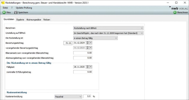 Rückstellungen gem. Steuer- und Handelsrecht – Berechnungsprogramm