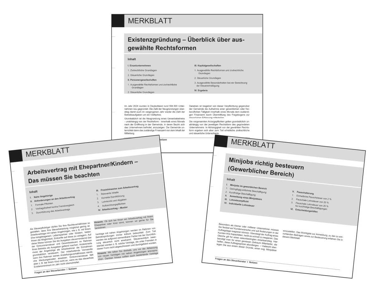 Für Ihre Mandanten: Praktische Mandanten-Merkblätter